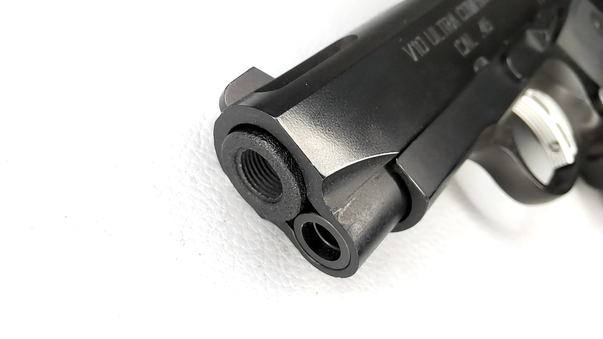 マズル先端内側部分に、サイレンサーやトレーサーを取り付けるのに広く使われている11mm雌ネジをモールド。