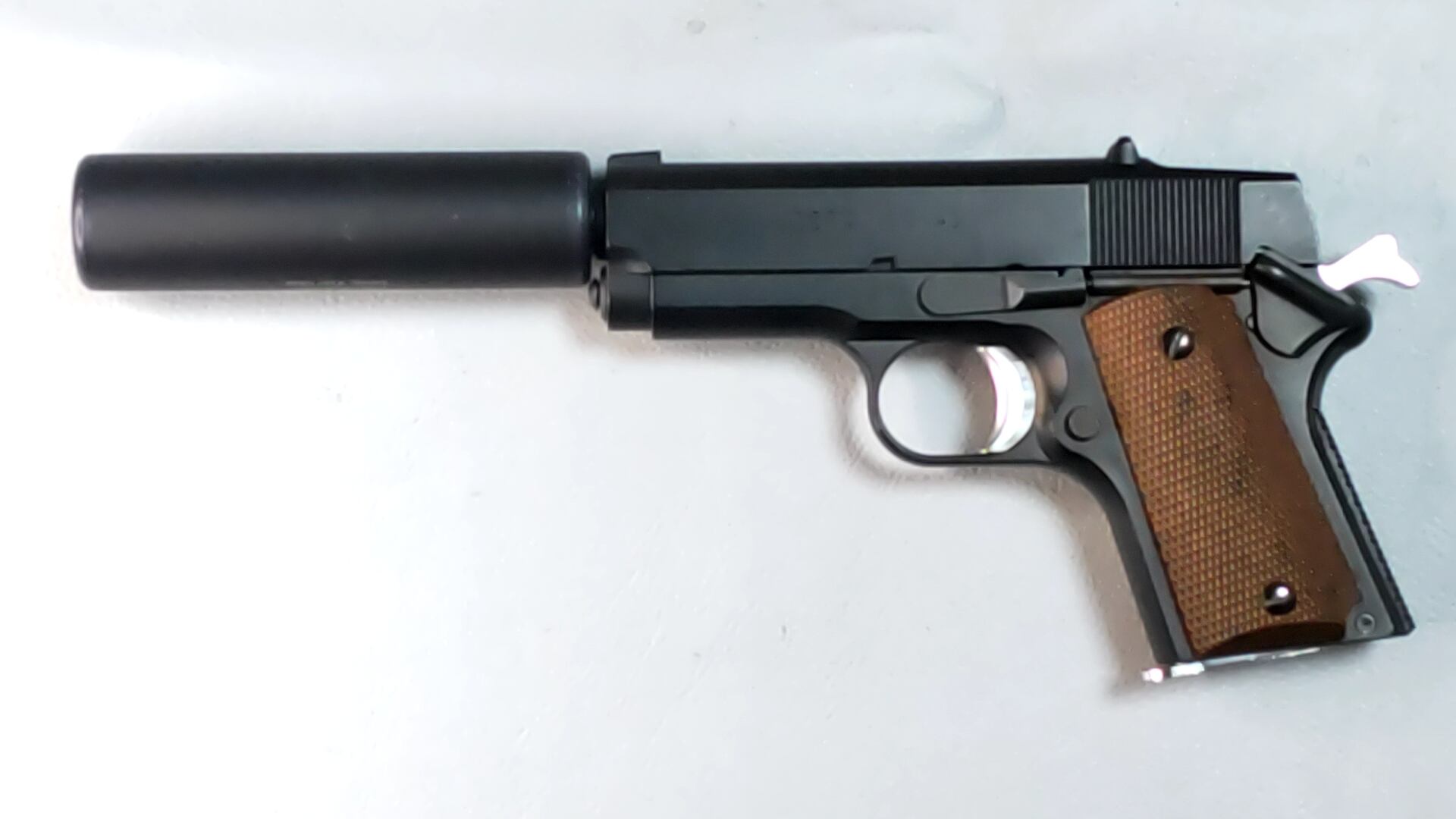 実銃のショートリコイル動作を模したチャンバー後部を下降させるギミックはオミットして設計していますので、サイレンサーを付けてもスムーズにブローバックします。