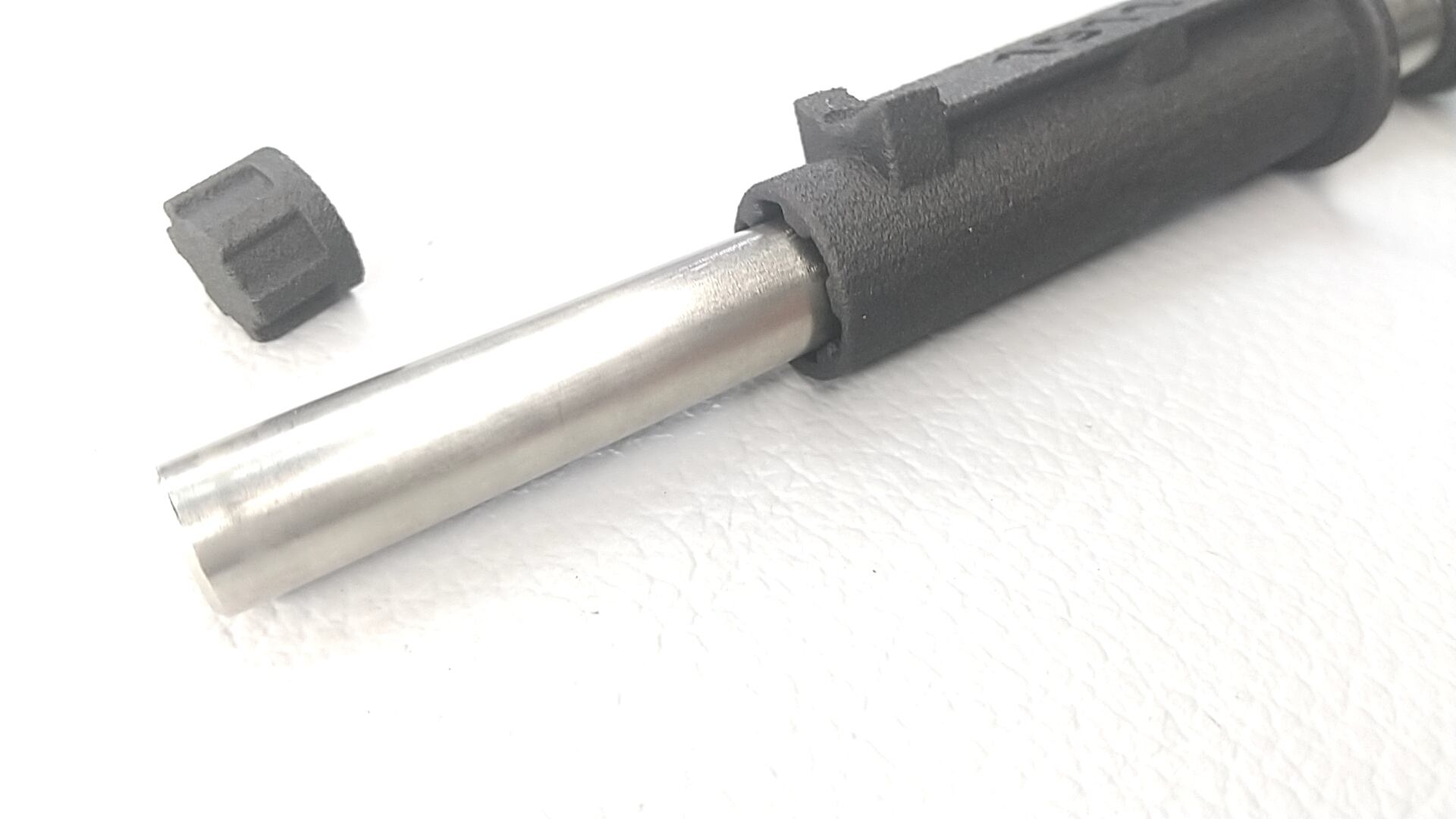 先端キャップを組み替える事で標準のショートリコイルガイドと、カスタムの8ミリ径の貫通タイプのロングリコイルガイド双方にお使い頂けます。