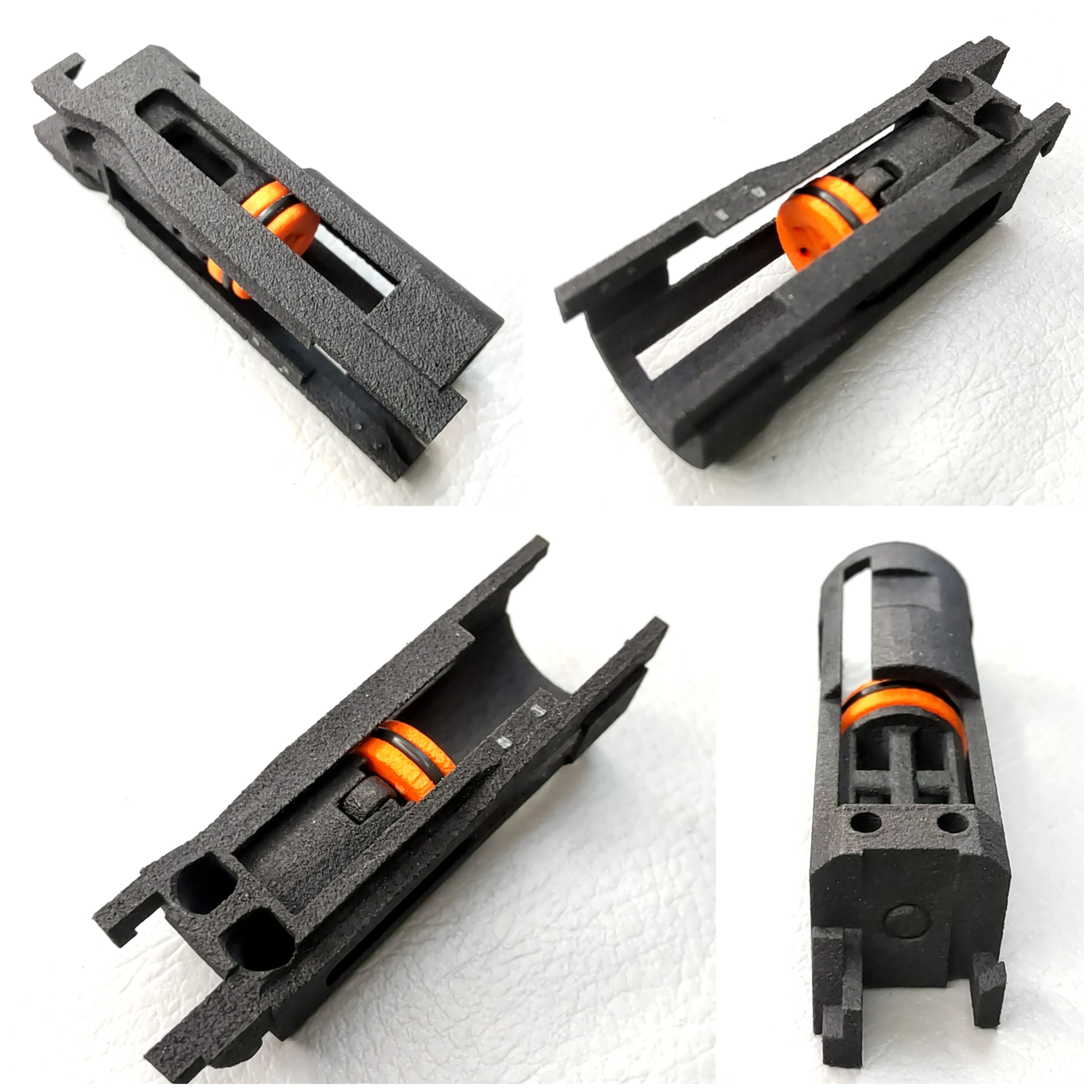重量わずか6g、純正の37gと比較して圧倒的に軽く、スライド後退スピードアップ、レスポンス向上、低温作動向上、ガス消費低減、等々メリットは沢山。