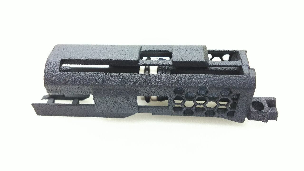 大手3Dプリントサービスの業務用機にて製造、ナイロン樹脂製、黒染色です。