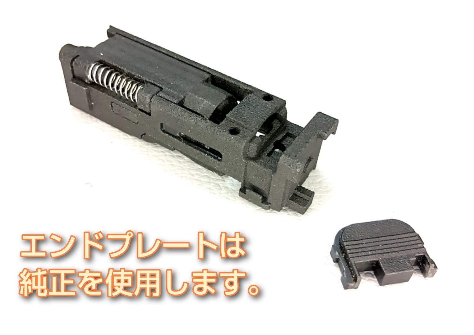 東京マルイ製ブローバックガスガンGlock19、17Gen.4 をコッキング式ガスガン(通称ガスコキ)に変更するための交換用ブリーチユニットの完成品です。