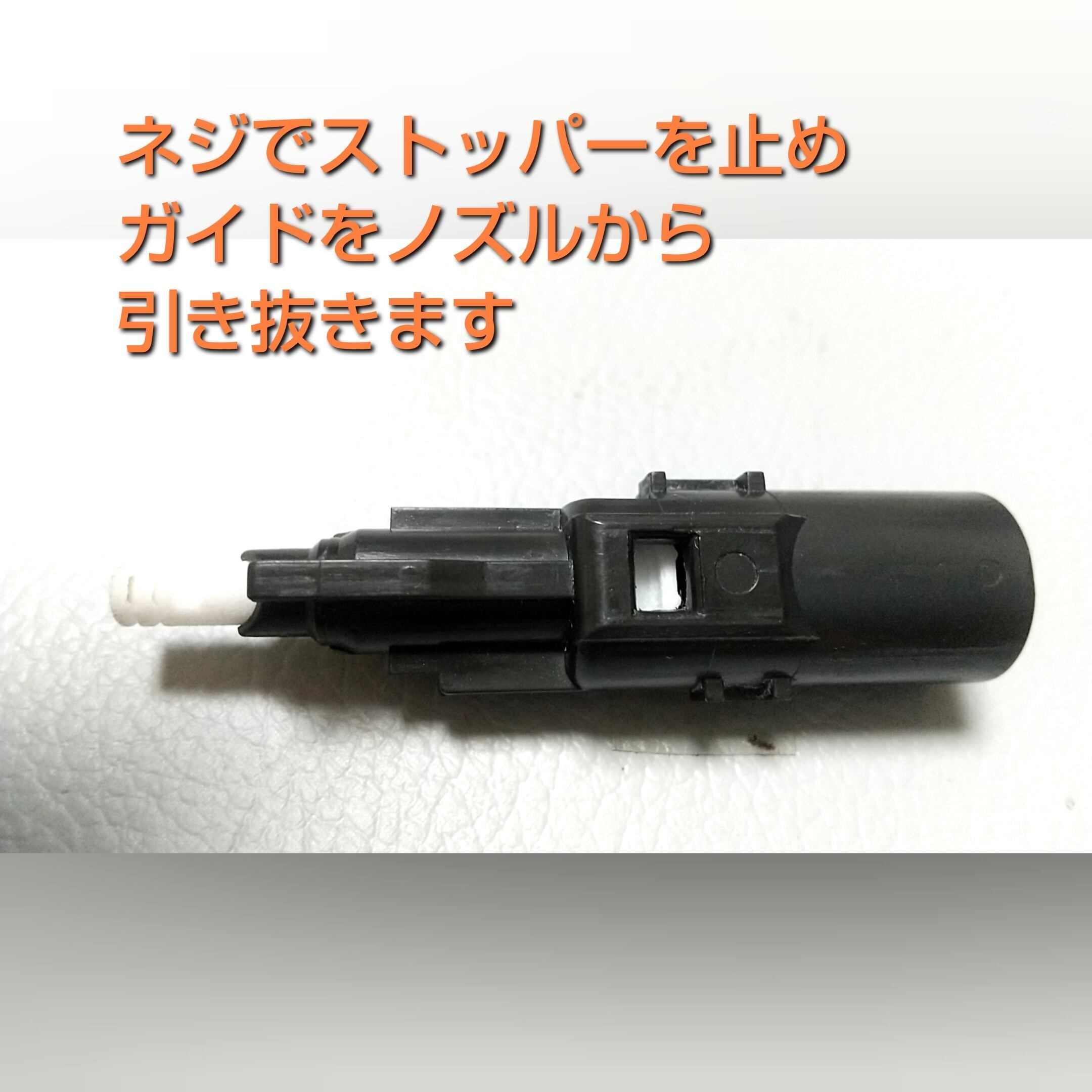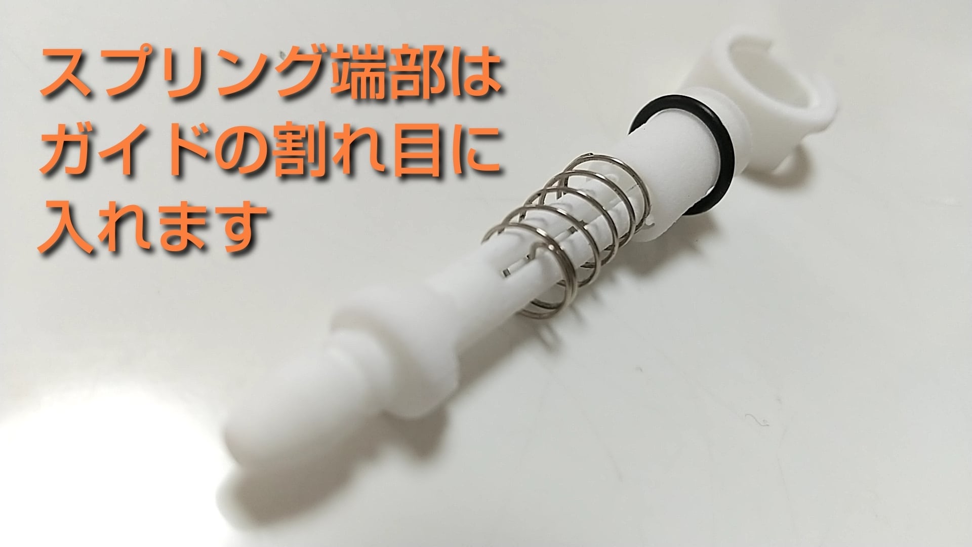 付属の調整用スペーサーはノズル内部先端に挿入して使いますが、バルブの閉鎖不良が起こる場合は使わないで下さい。