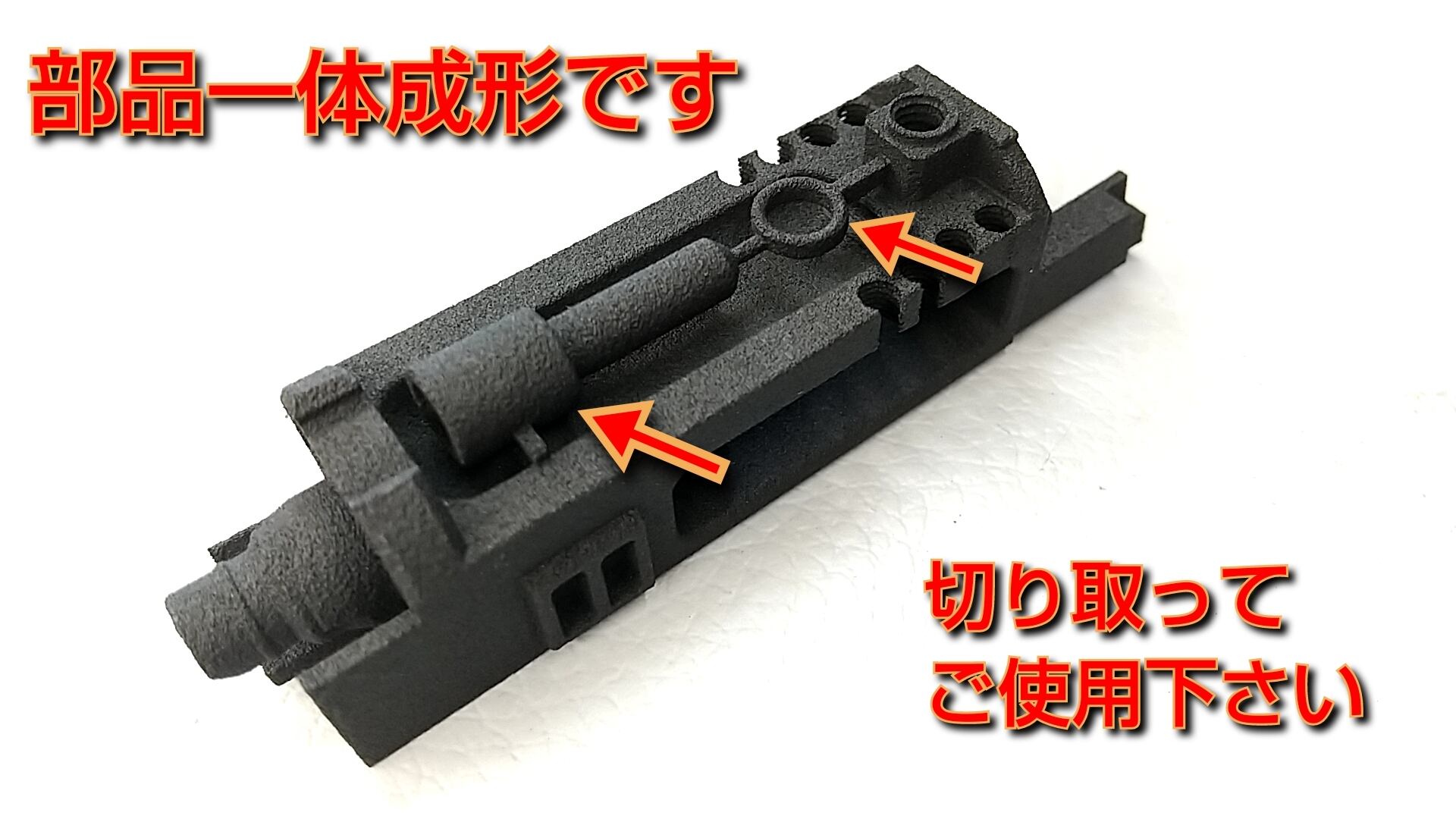 スライド内部、ピストン(ブリーチ)のアッセンブリーを一式、対応する純正部品と入れ替えて下さい。取り付けネジは純正品を流用します。